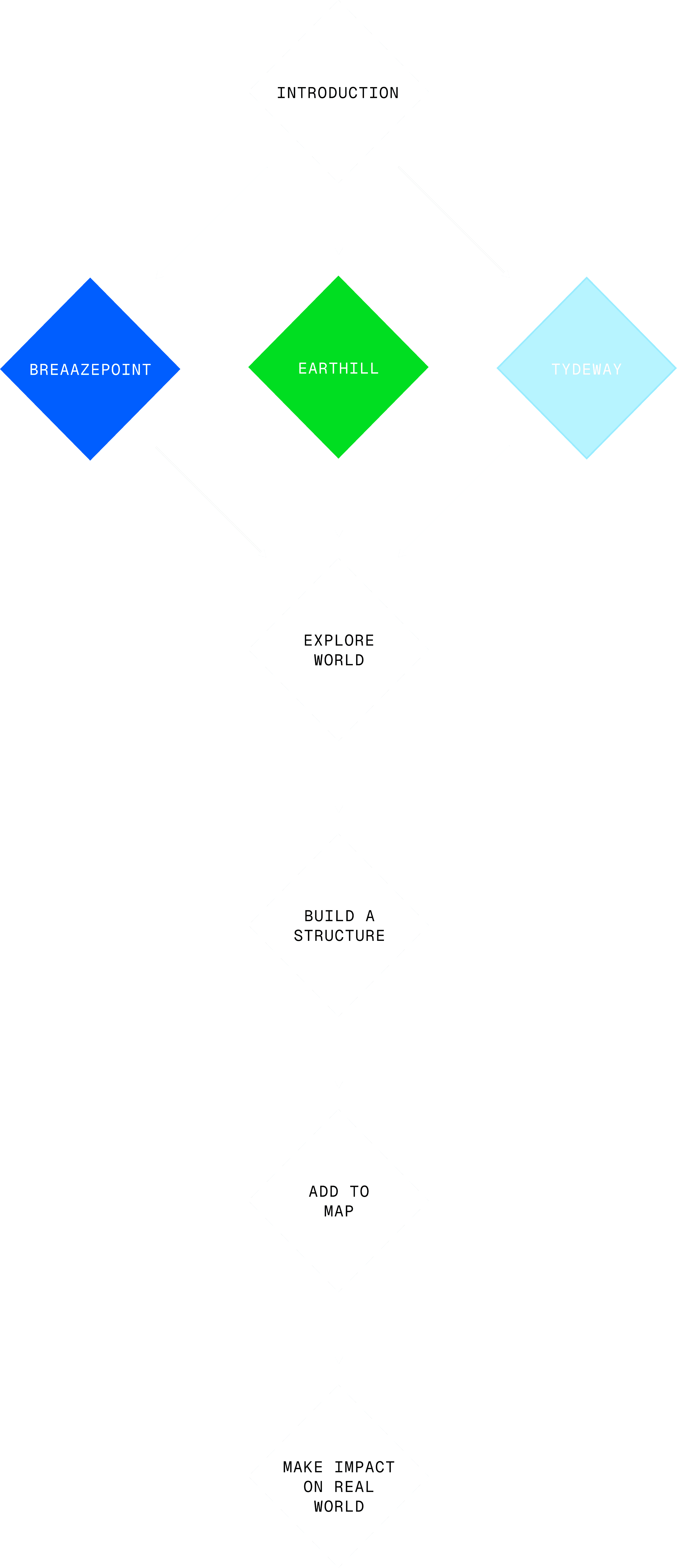 In this project, nature guides principles of structure, design, and ecology, which users apply when building their own structures within a shared virtual space separated into 3 worlds inspired by air, earth, and water.